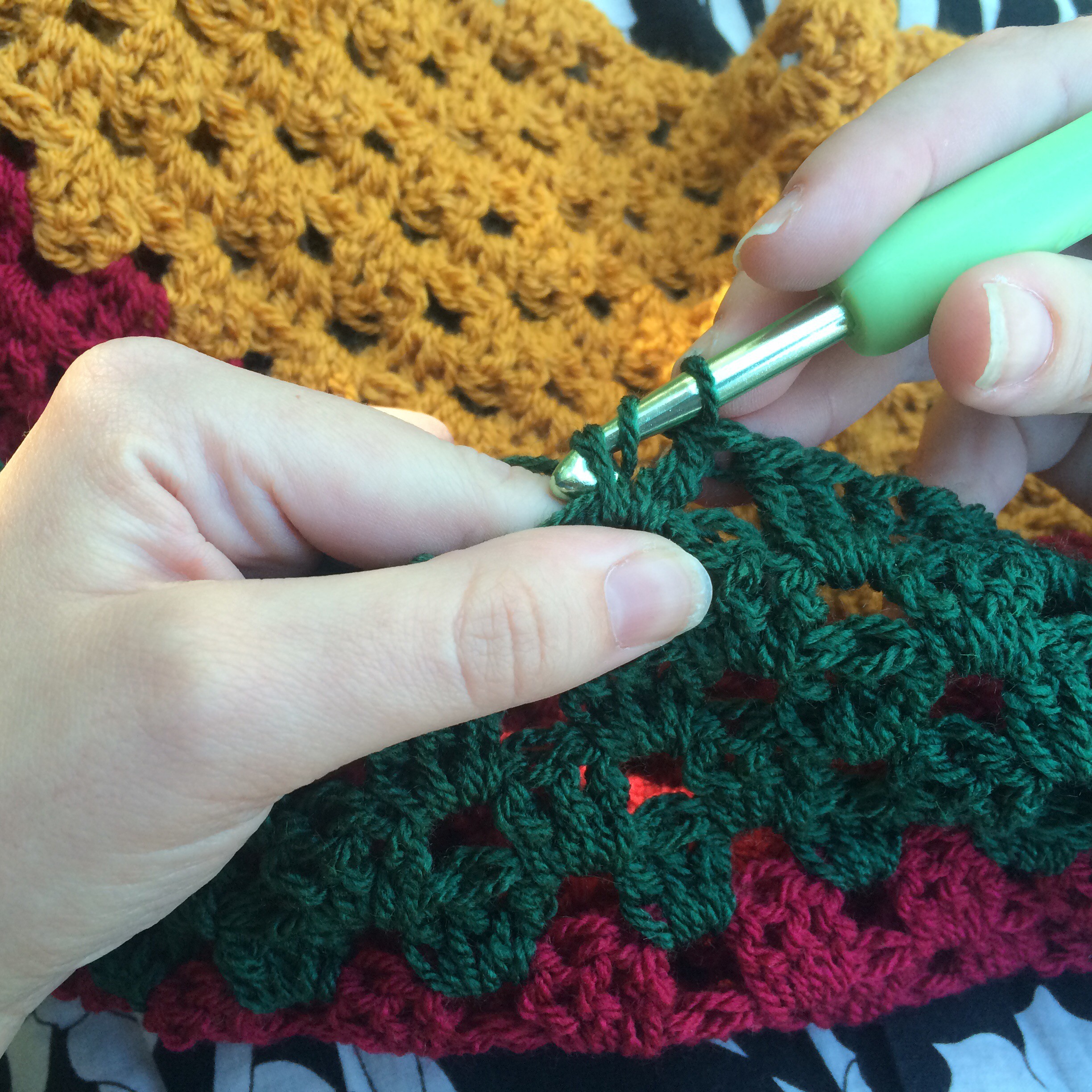 Inspired by the awesome retro blankets I’ve seen online recently I decided to make my own. I used Stylecraft yarn which comes in a great range of colours. For the retro feel I choose mustard, deep red, bottle green, an off cream, burnt orange, and a warm blue. Most of the retro blankets I’ve seen are granny squares which annoy me to pieces. After searching around I found a granny stripe pattern. This was great as it works from left to right and its very simple to understand. I’m doing 9 rows of each colour before repeating the pattern but in the opposite way. It’s coming together faster than I though and once you get past those tricky first three rows you almost don’t have to think.